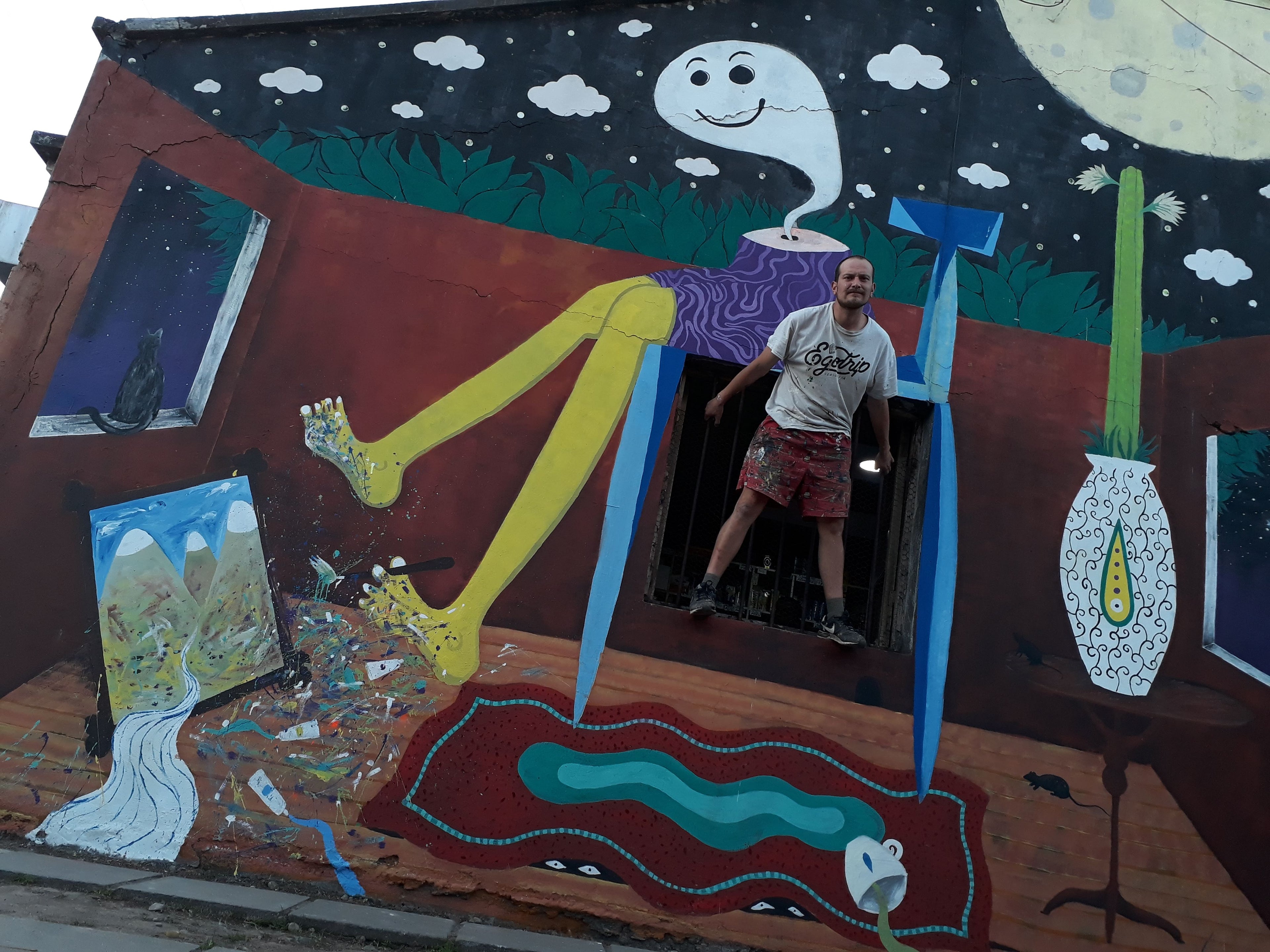 His mural practice and paintings took him to Mexico, where he joined art residencies, mural projects, and collaborations with mexican communities. He later traveled through Europe as a digital nomad, painting murals and building artistic connections. He eventually returned to Mexico to continue creating and exploring artistic projects.